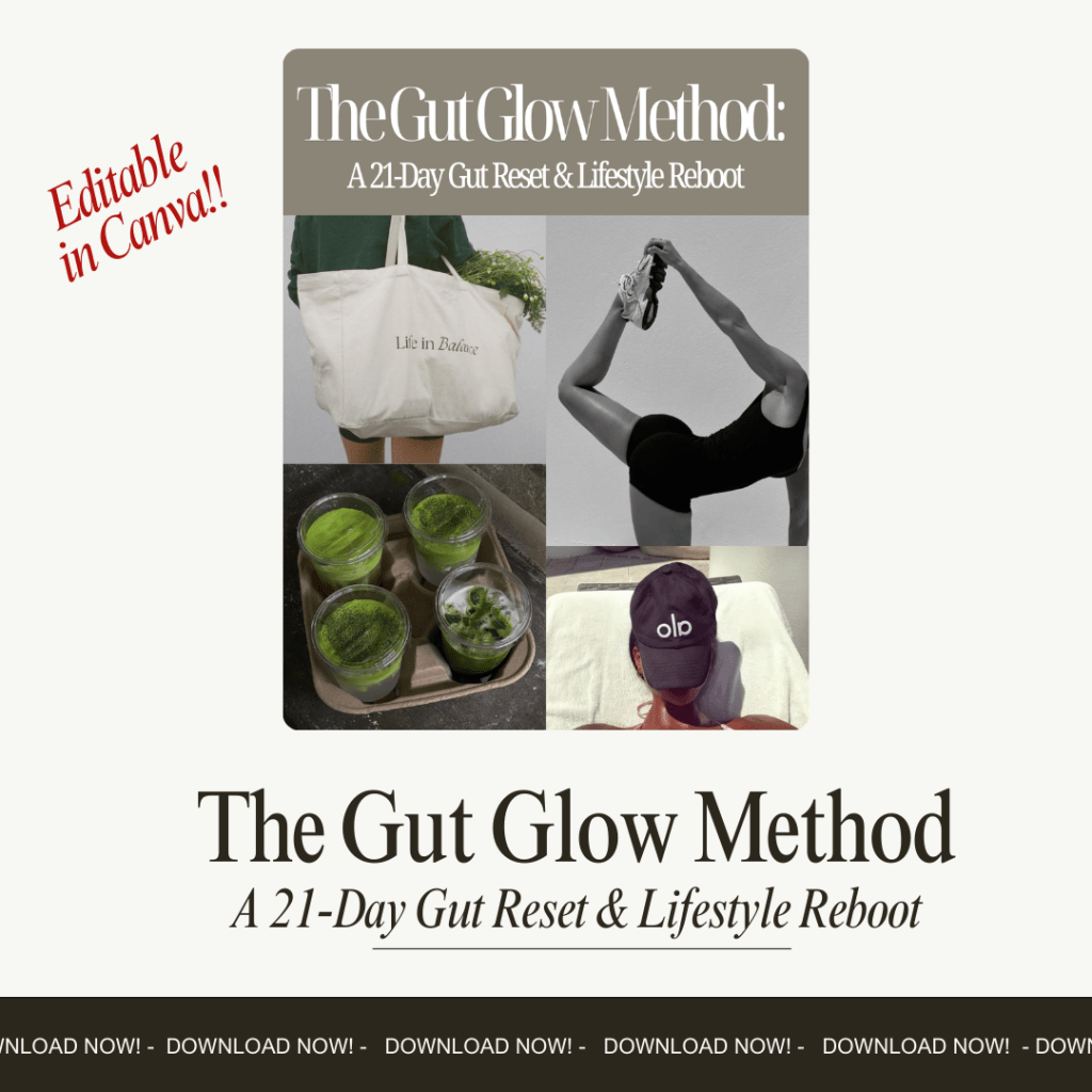 Glow from the inside out with The Gut Glow Method: your 21-day reset to heal, nourish. and radiate wellness. (Editable in Canva)